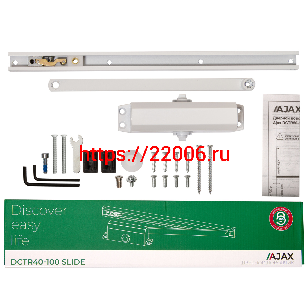 - Доводчик Ajax (Аякс) дверной DCTR40-100 slide WH белый в Березовском недорого