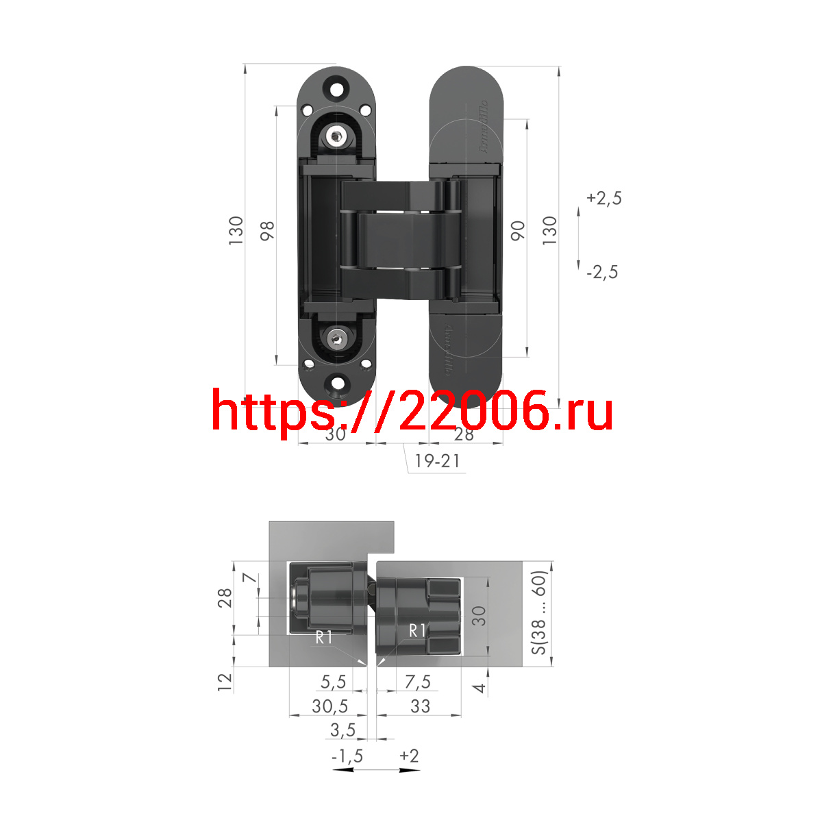 - Петля Armadillo (Армадилло) скрытой установки U3D5000.VPG SC мат.хром TECH в Березовском недорого