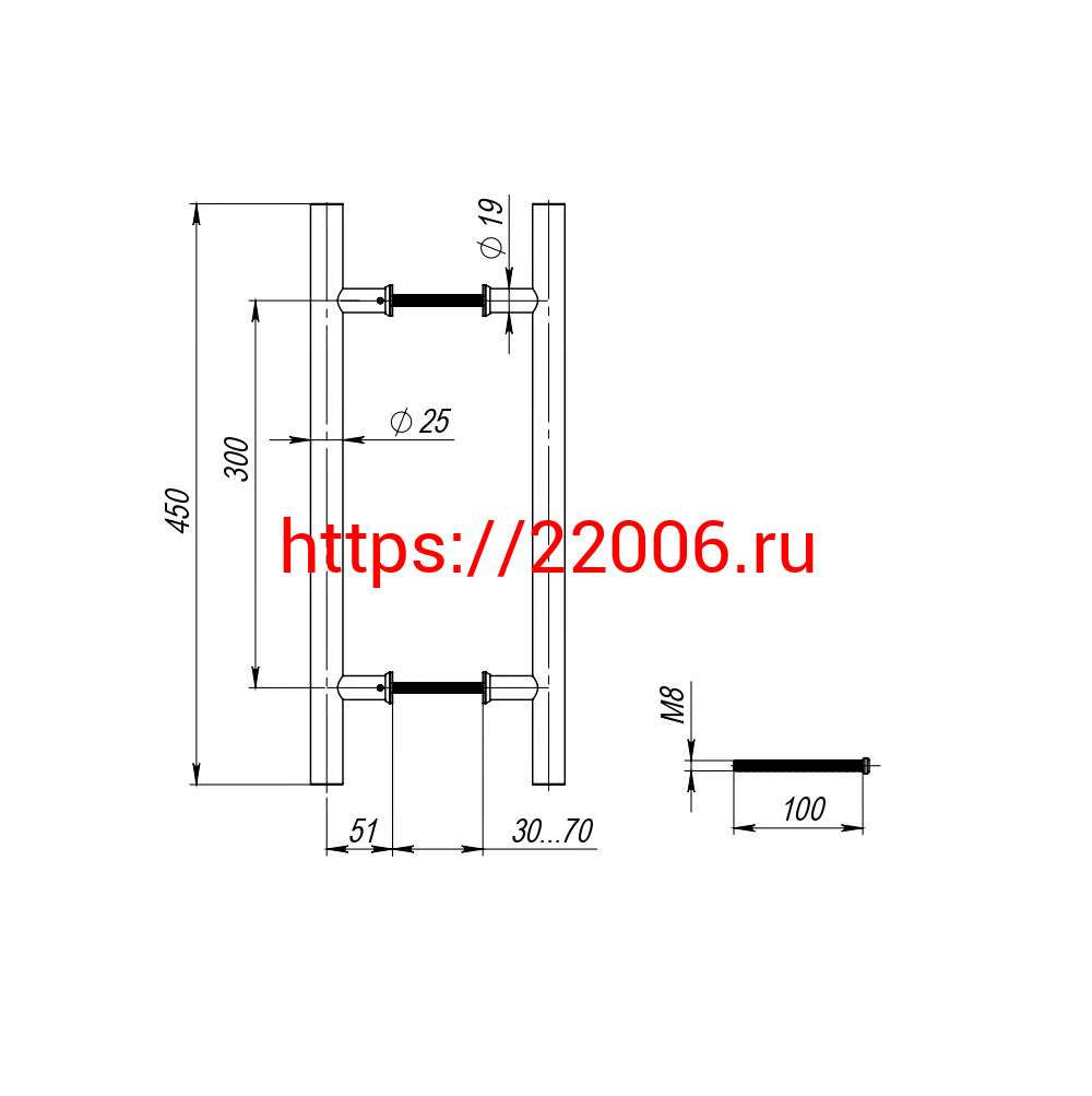 - Ручка-скоба Fuaro (Фуаро) PULL.PH25/300.22 INOX 201 (PH-22-25/300-INOX) в Березовском недорого