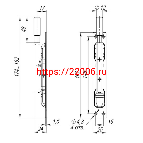 - Задвижка Fuaro (Фуаро) торцевая RIGEL-set/160 D12x60mm (TDB set 160-24) в комплекте с ригелем в Березовском недорого