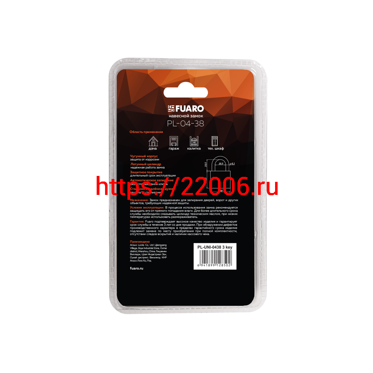 - Замок Fuaro (Фуаро) навесной PL-UNI-0438 3key в Березовском недорого