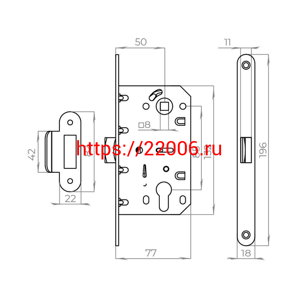 - Корпус Ajax (Аякс) врезного замка c защёлкой PLASTLP85-50 SN матовый никель в Березовском недорого