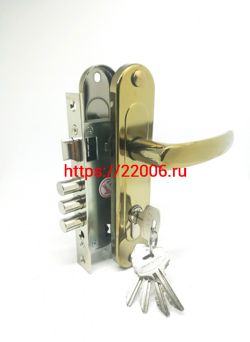 - Замок Zenit (Зенит) врезной цилиндровый с защёлкой в комплекте с ручкой ЗВ7-60.1-02 (золото лак), 5 кл. в Березовском недорого
