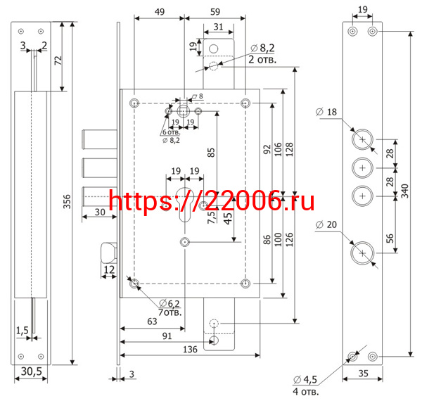 - Корпус Guardian (Гардиан) врезного замка с защёлкой ЗВ 22.12 с тягами (без планки) /123:131/ в Березовском недорого