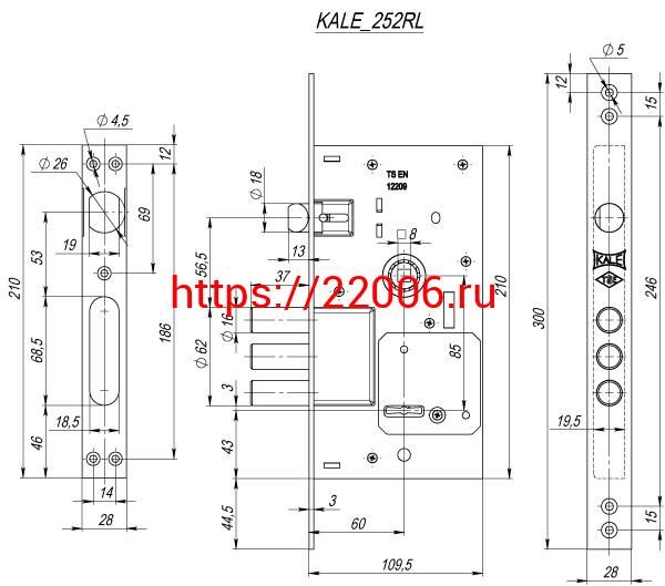 - Врезной сувальдный замок Kale Kilit 252/RL в Березовском недорого