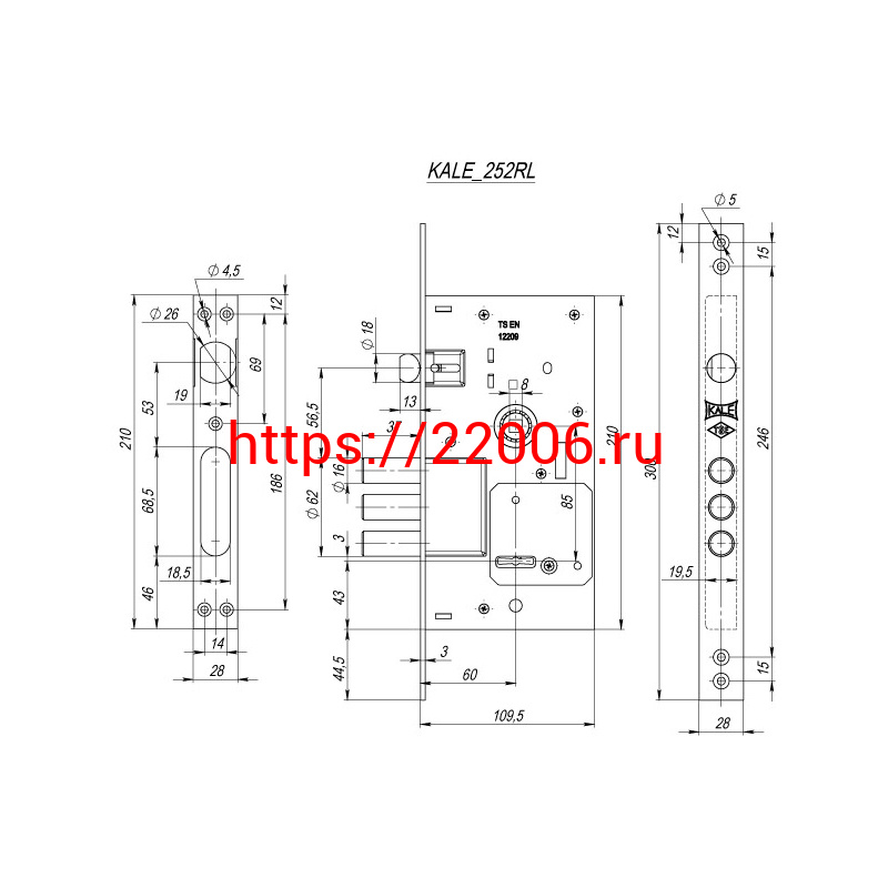 - Замок Kale kilit (Кале килит) врезной сувальдный с защёлкой 252/RL, 5 кл. (кл. 60 мм) в Березовском недорого