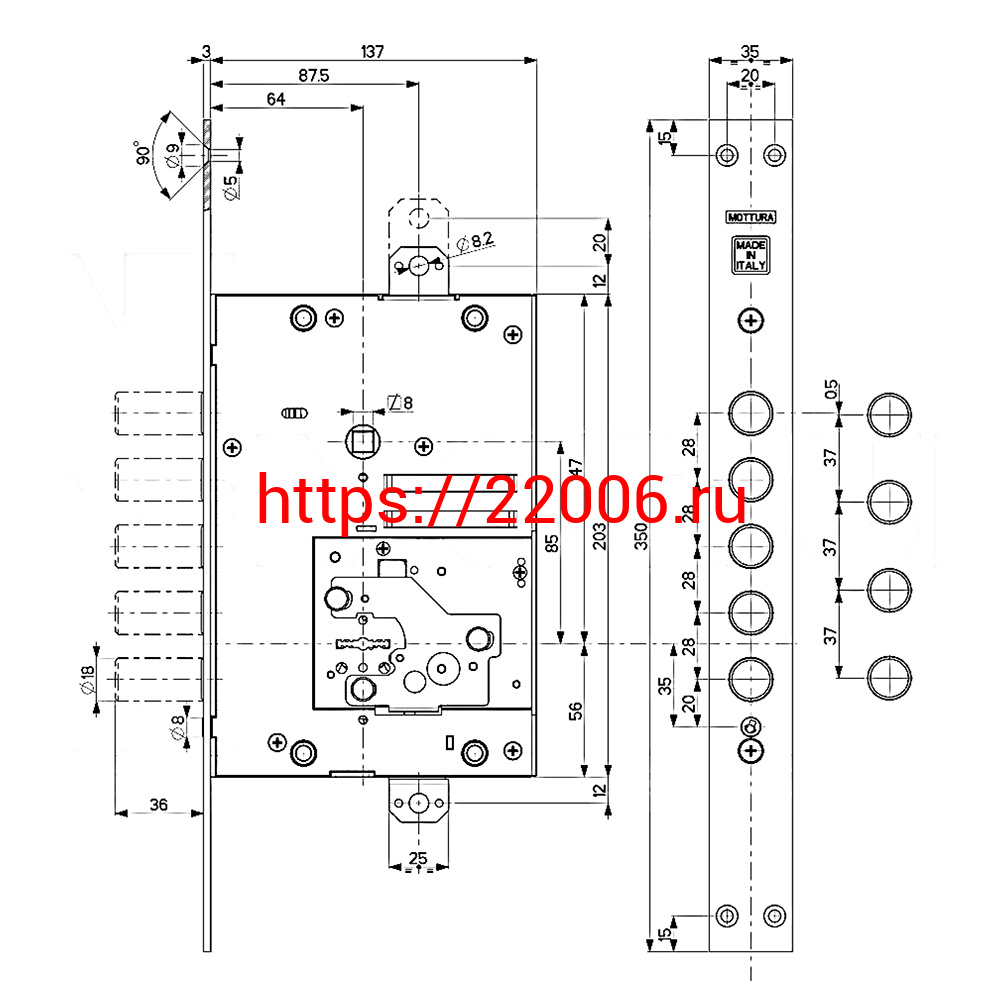 - Замок Mottura (Моттура) врезной сувальдный 52.J525M-S MyKey (левый), ключ 60 мм, без накл. в Березовском недорого