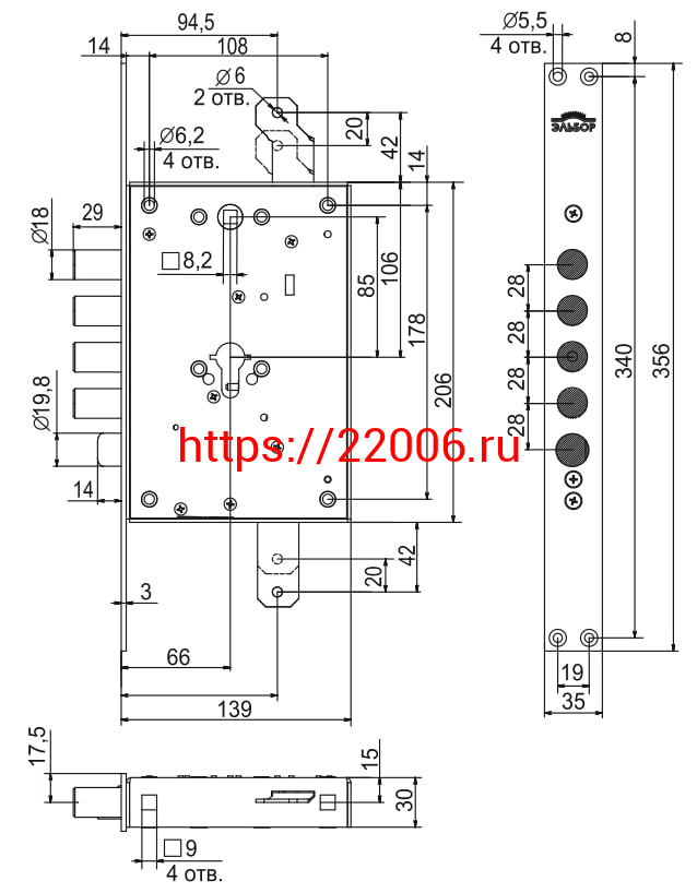 - Корпус Elbor (Эльбор) врезного замка с защёлкой Рубин 1.08.21 с тягами /56152/ в Березовском недорого