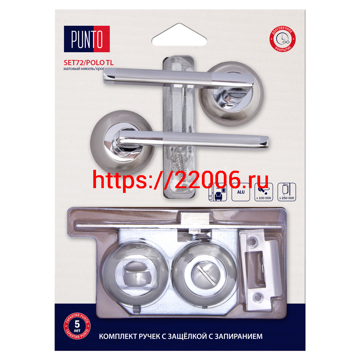 - Комплект ручек Punto (Пунто) с защелкой c запиранием LM/A SET72R.TL54.POLO/HD SN/CP-3 матовый никель/хром в Березовском недорого