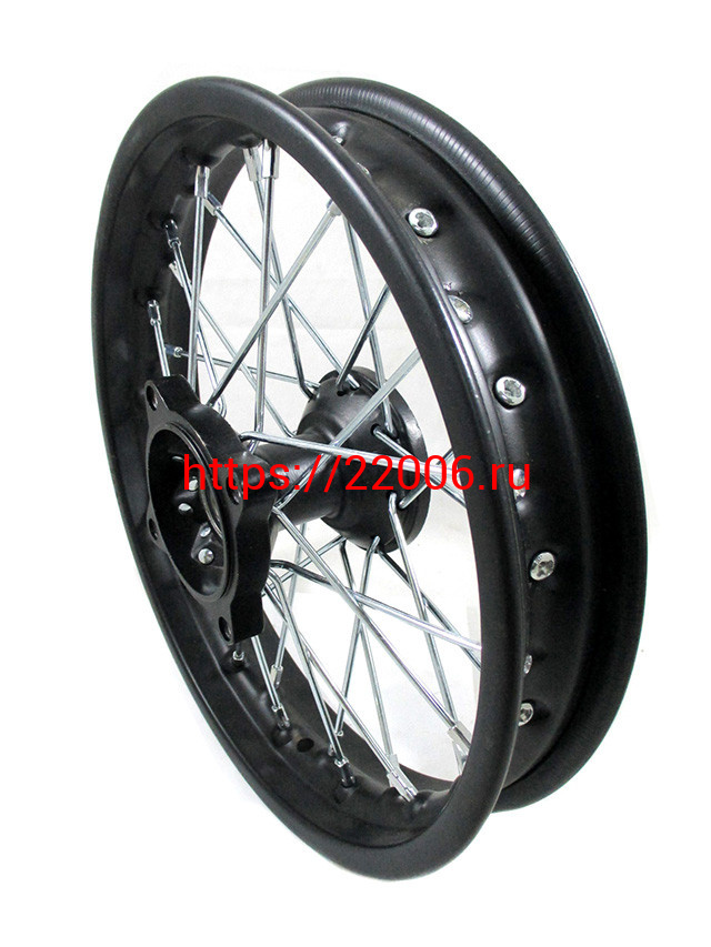 - Диск колеса передний стальной на спицах 1.40 - 12" цвет черный, дисковый тормоз ось 15мм Питбайк в Березовском недорого