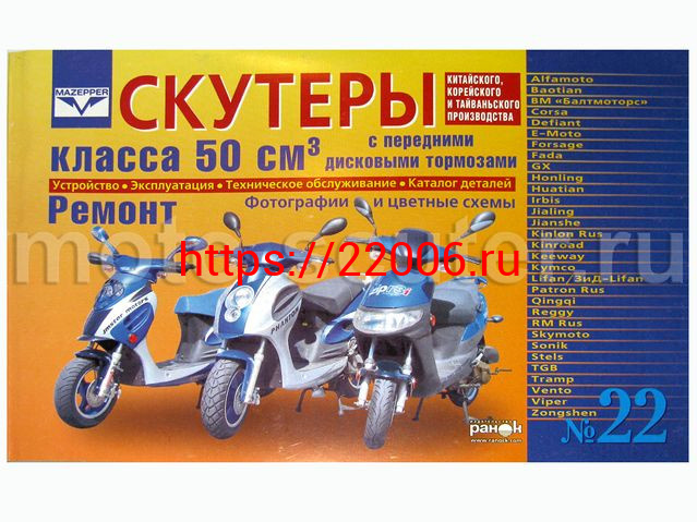 - Книга № 22 Скутеры китайского производства (двигатель 50 см3, дисковый) Устройство, Ремонт, Каталог в Березовском недорого
