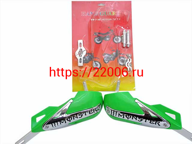 - Защита рук алюминиевая универсальная с креплением на 22 руль зеленая Monster в Березовском недорого