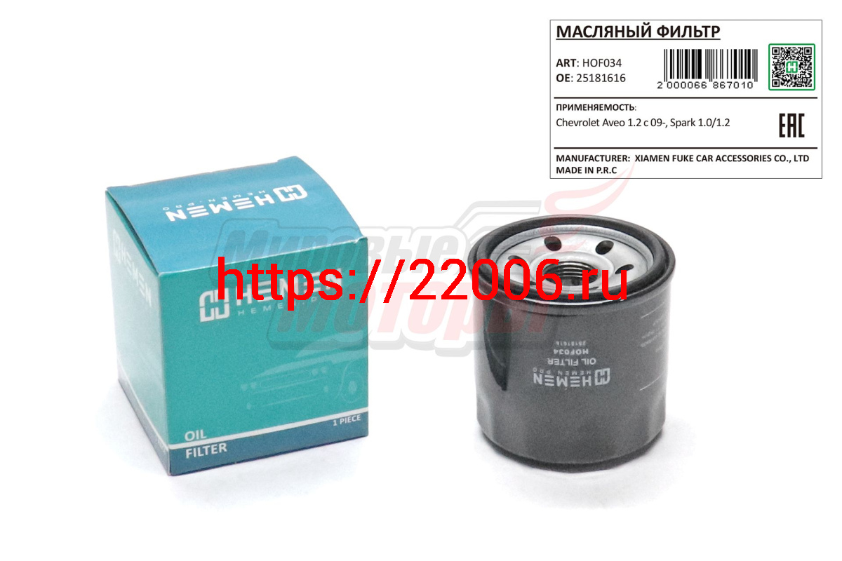 - Фильтр масляный Chevrolet Aveo 1.2 c 09-, Spark 1.0/1.2 (HOF034) в Березовском недорого