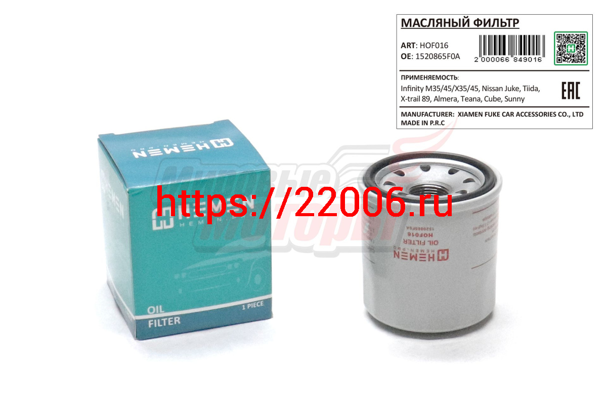 - Фильтр масляный Infinity M35/45/X35/45, Nissan Juke, Tiida, X-trail 89, Almera, Teana, Cube (HOF016) в Березовском недорого