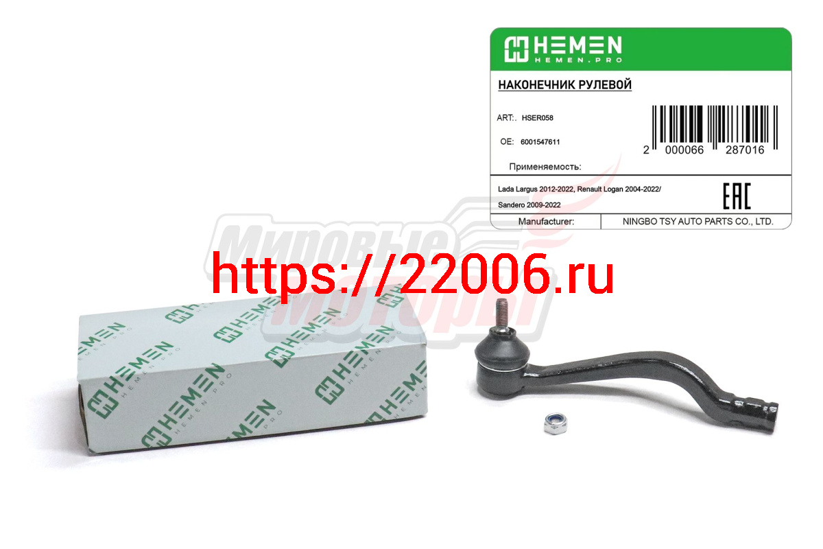 - Наконечник рулевой правый Lada Largus 12-, Renault Logan 04-, Sandero 09- (HSER058) в Березовском недорого