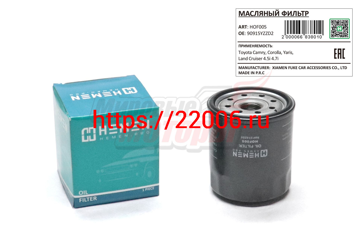 - Фильтр масляный Toyota Camry, Corolla, Yaris, Land Cruiser 4.5i 4.7i (HOF005) в Березовском недорого