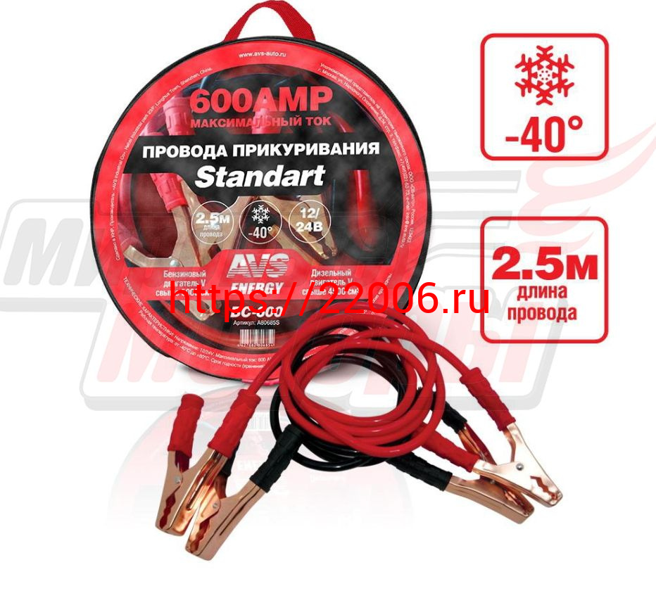 - Провода прикуривателя "AVS" Standart морозостойкие 600А/2,5м (ВС-600)(в сумке) в Березовском недорого