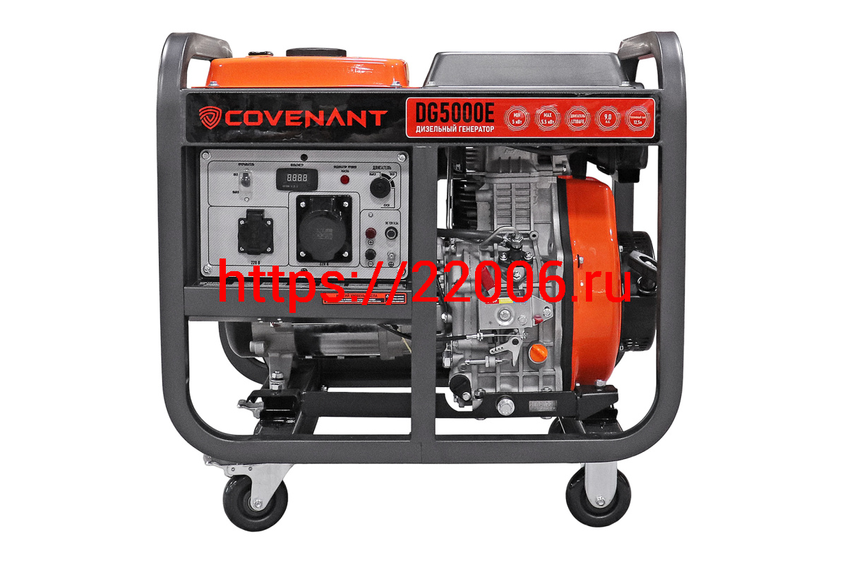 - Генератор диз. "COVENANT" DG5000E (5,0/5,5кВт, LT186FA, 418cc, бак 12,5л,115кг,электростартер,МЕДЬ) в Березовском недорого