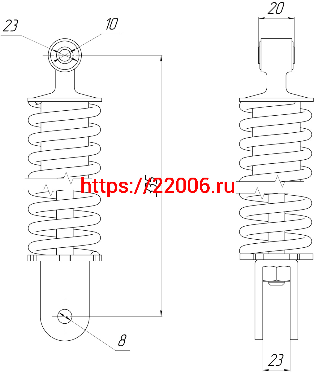 - Амортизатор зад. L-335, D1-23, d1-10,H1-20, d2-8, H2-23 FT50QT-10 большой в Березовском недорого