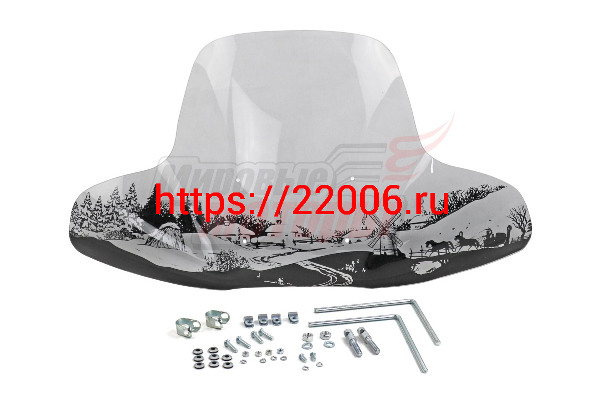 - Щиток ветровой "Деревня" (жесткое стекло с шелкографией) (3мм) (для квадроциклов) (с крепежами) в Березовском недорого