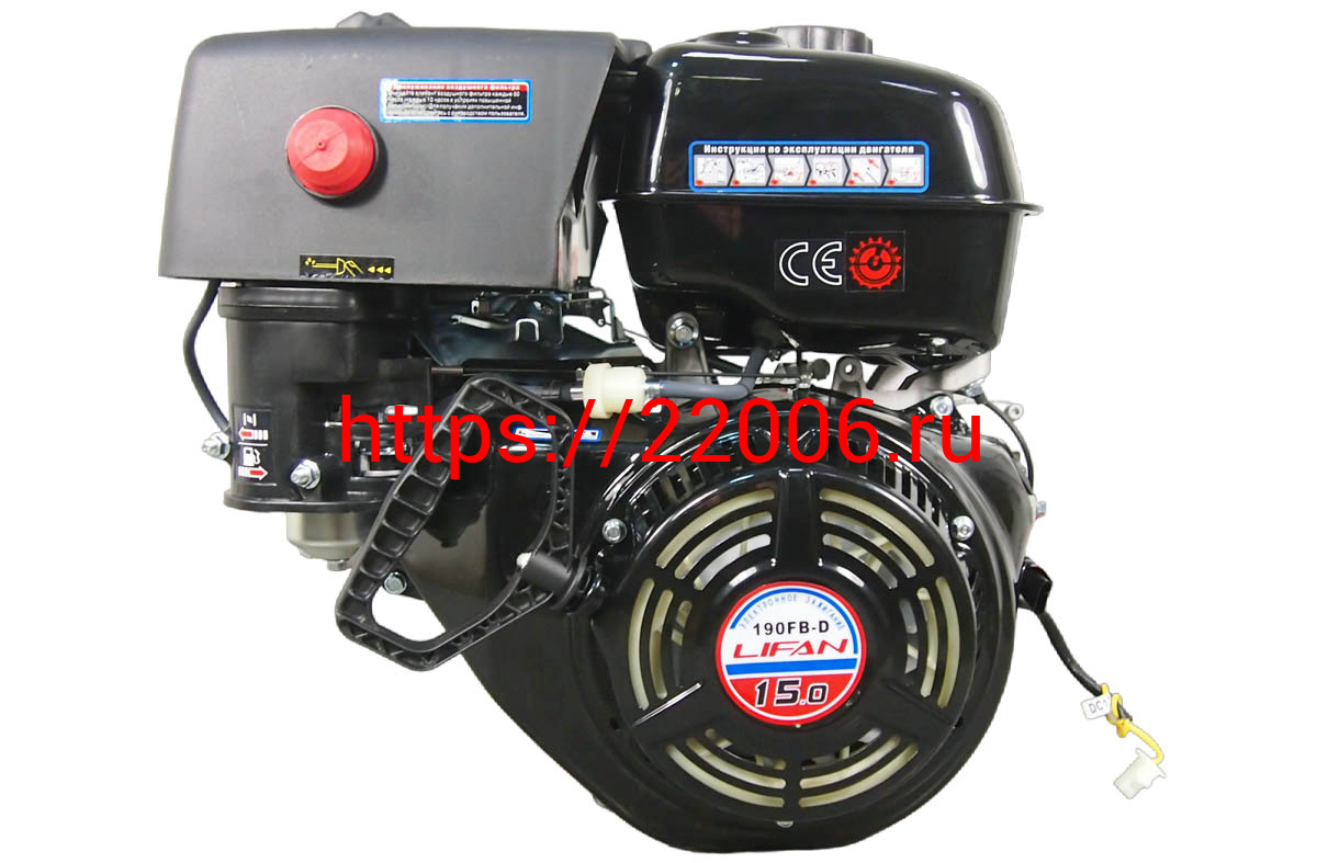 - Двигатель LIFAN 15 л.с. 190F-D (вал d25 мм) ЭЛ.СТАРТЕР, с катушкой освещения 12В 7А 84Вт Лидер в Березовском недорого