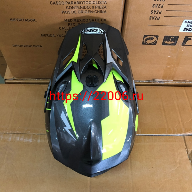 - Шлем кроссовый COBRA JK801, №3 серый - лайм, размеры L в Березовском недорого