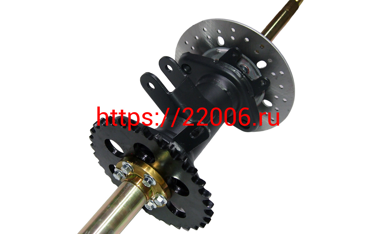 - Ось задняя (810мм*М20*1,5мм) ATV TUNGUS 250 в сборе (корпус поднипника, диск тормоза, звезда) в Березовском недорого